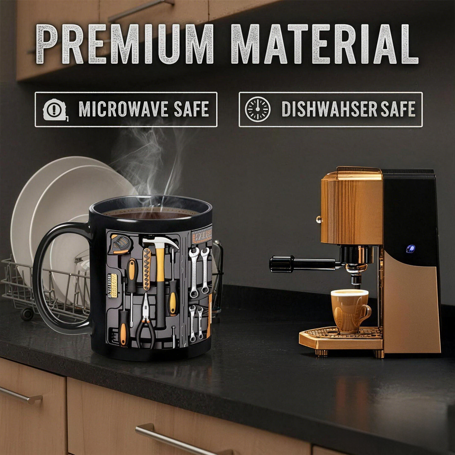 Forget about plain, boring cups that lack any real personality. The realistic toolbox design honors his hard work, making his morning coffee feel like a well earned reward.